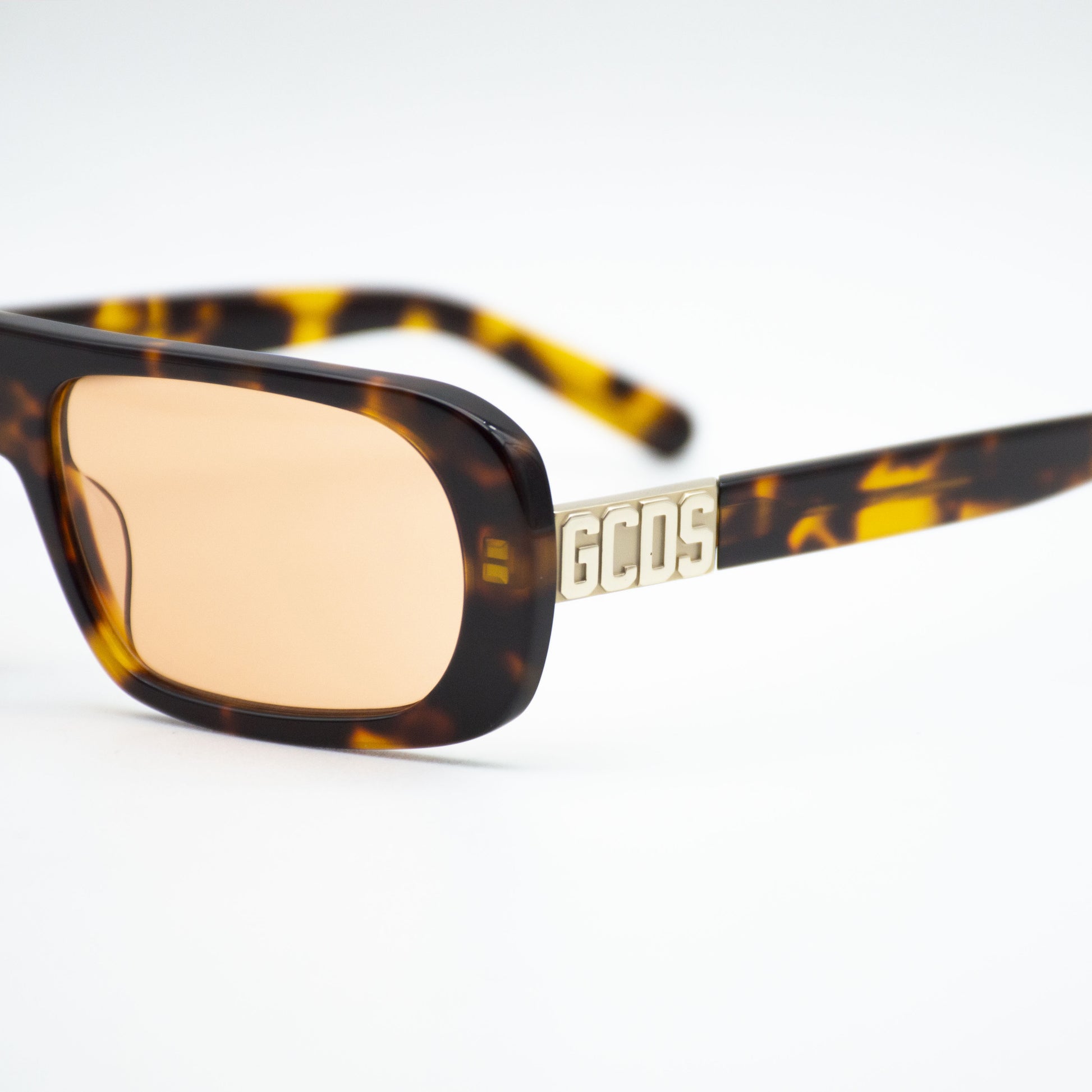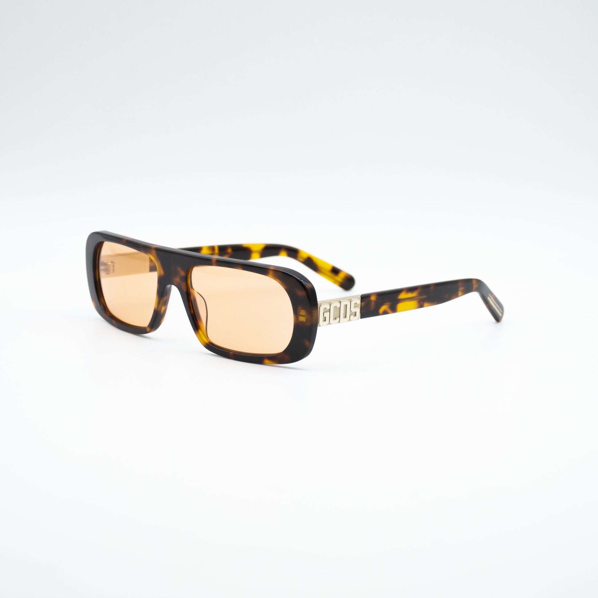 The model is characterized by an oversized front which contrasts with the thinness of the temples. The latter are enriched by a metal plaque with the iconic GCDS logo, in relief.