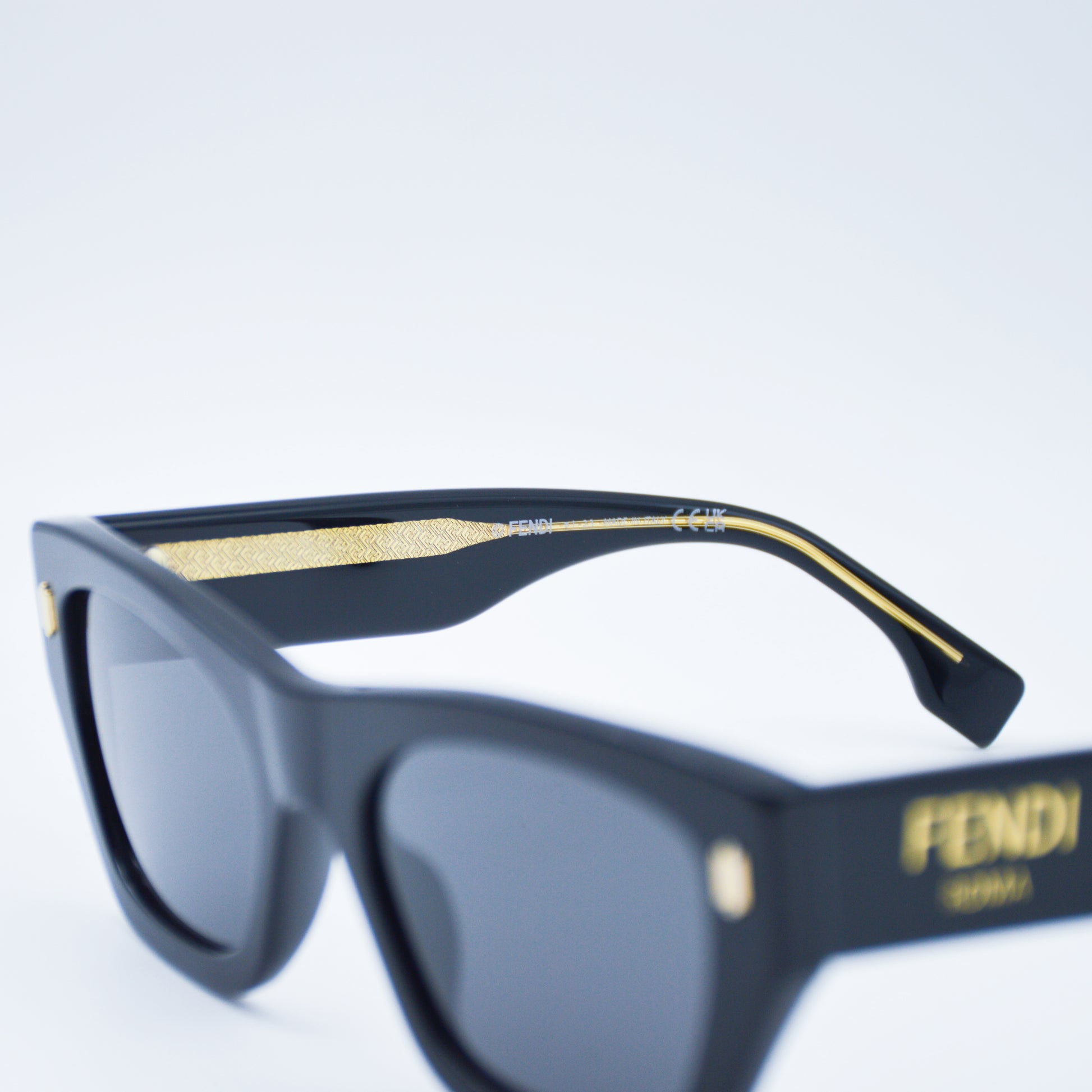 The model features exposed metal temples with laser-engraved "FF".
